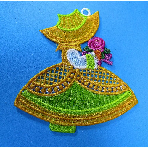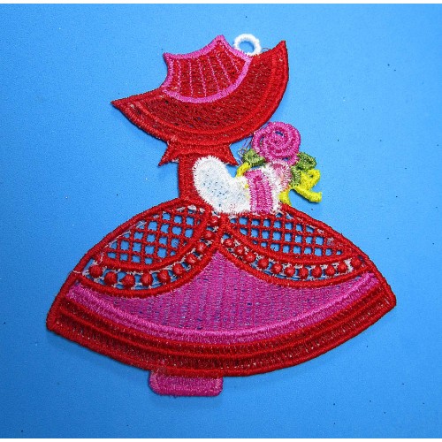 Sangat cantik dan comel ringan serta tahan lasak dengan kaedah pembuatan freestanding lace hanya menggunakan benang disulam atas water soluble stablaizer, memerlukan ketelitian dan kesabaran semasa membuatnya.